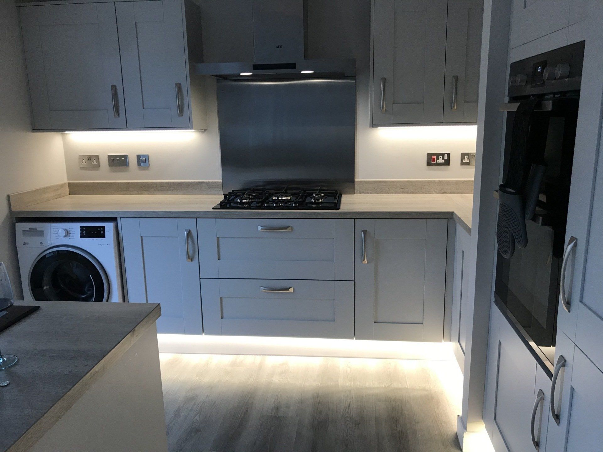 Electrical Installations epecially in the kitchen are considered high risk, minimise this risk using a qualified and registered Electrician. Electrical work in the kitchen can include cooker and hob supply, new sockets and lighting